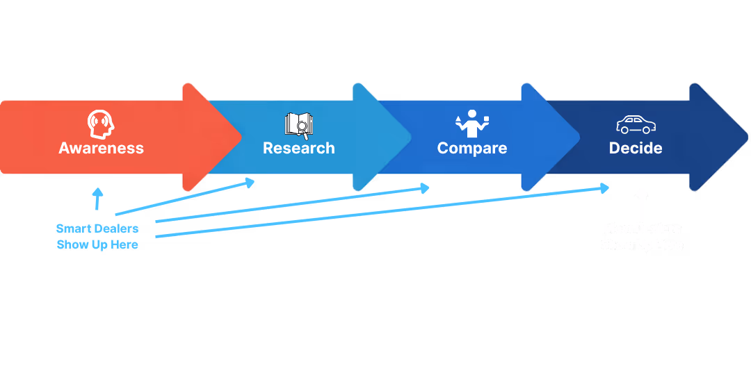 But most dealers only start showing up in the last 15 minutes of the buying journey — when everyone is competing on price, inventory, or luck.